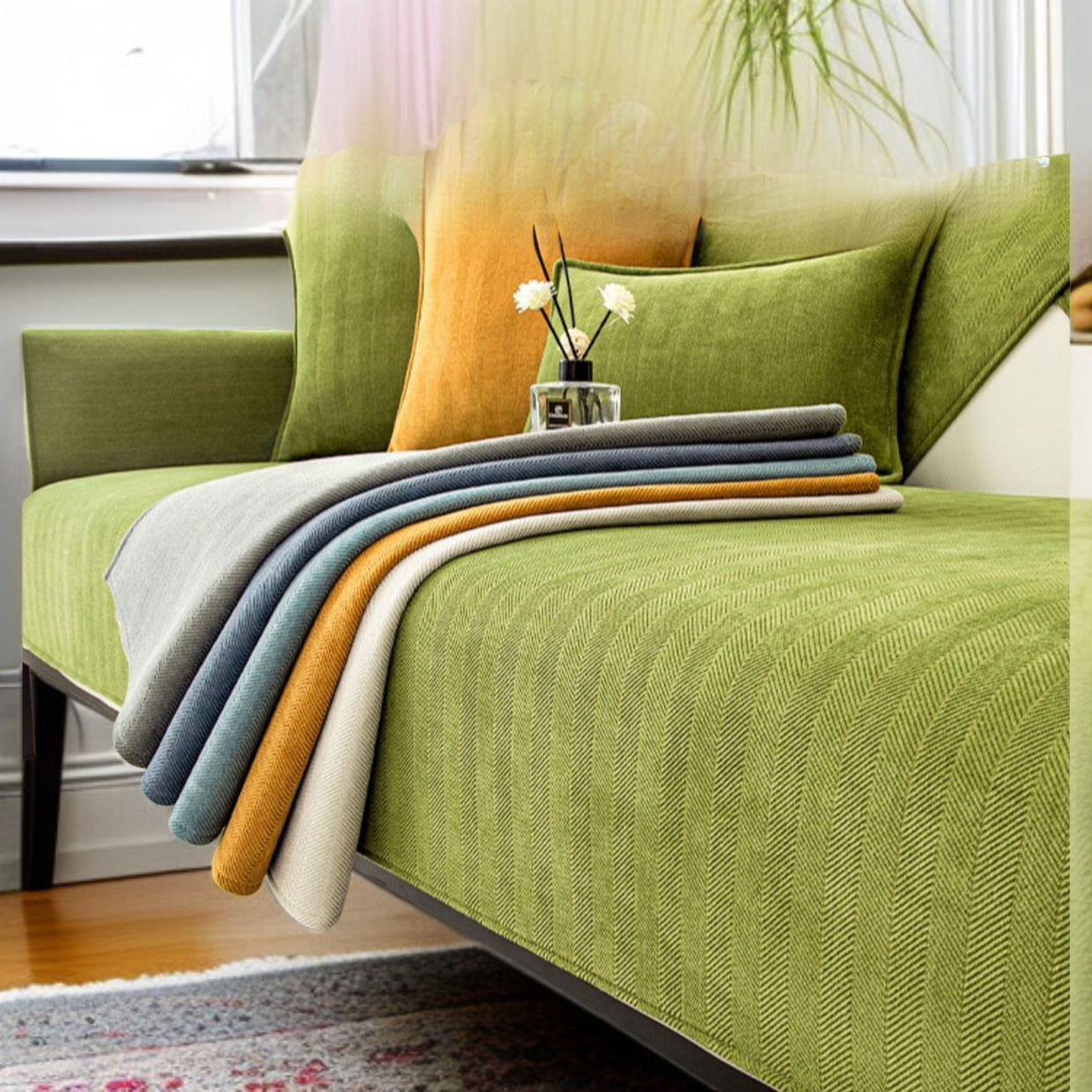 シュニール織ソファカバー ソファカバー ピュアカラー 滑り止め ホームユース ナチュラルコンフォート